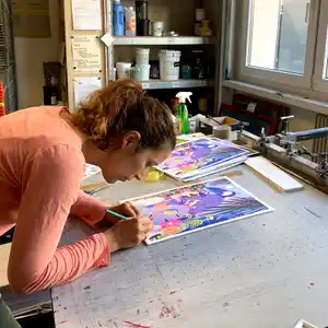 Formée par l’association Supersenior à Besançon je pratique l'impression risographique pour imprimer mes illustrations.